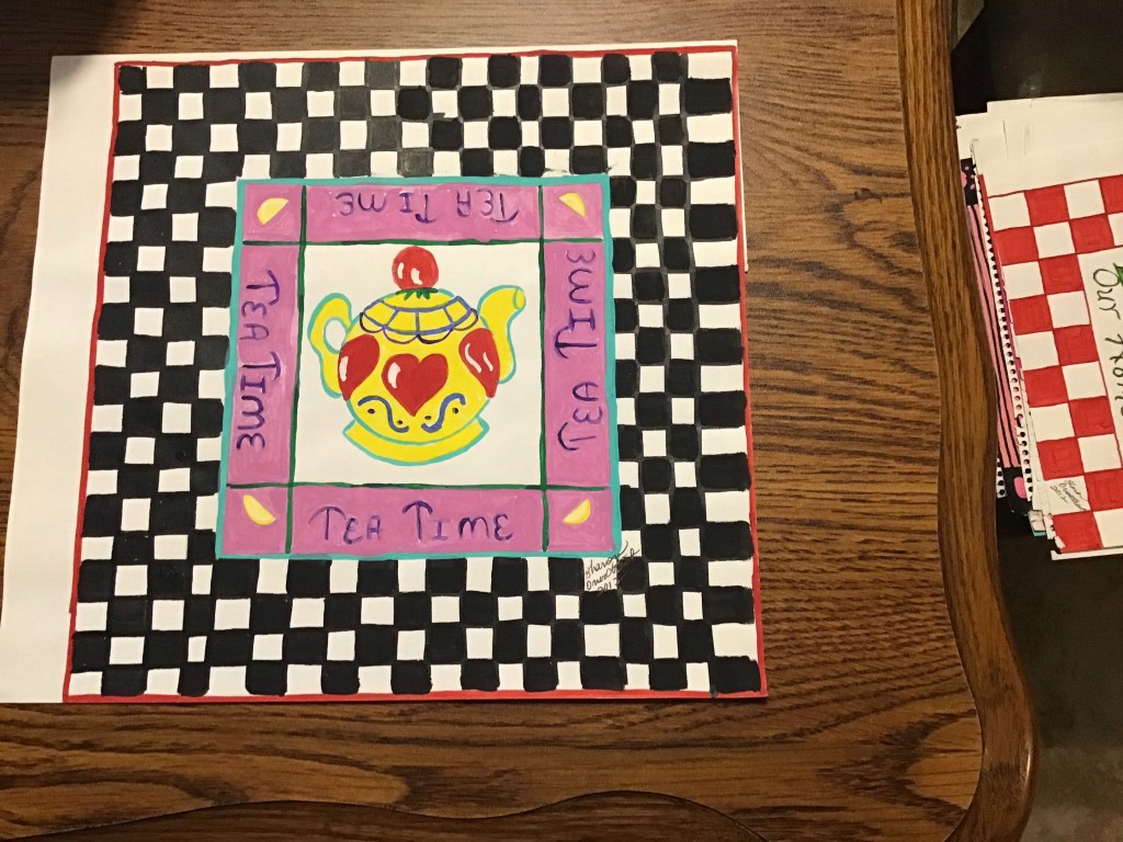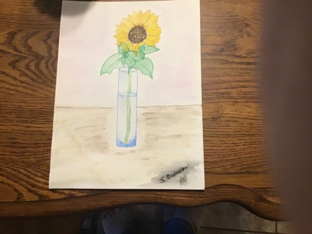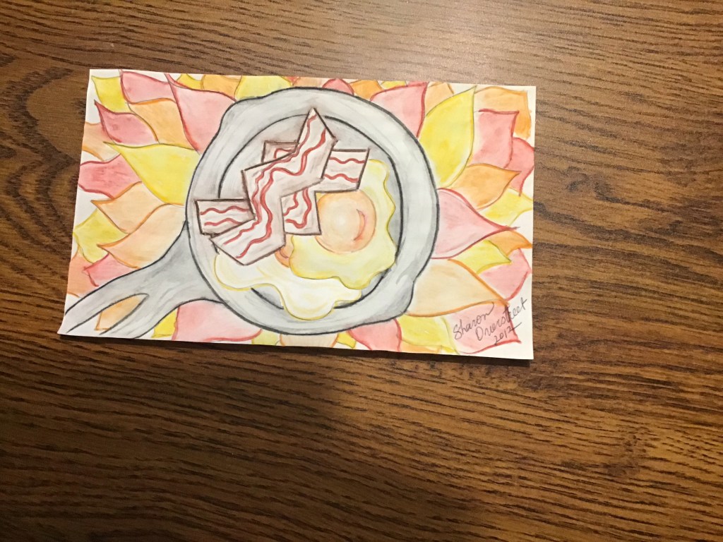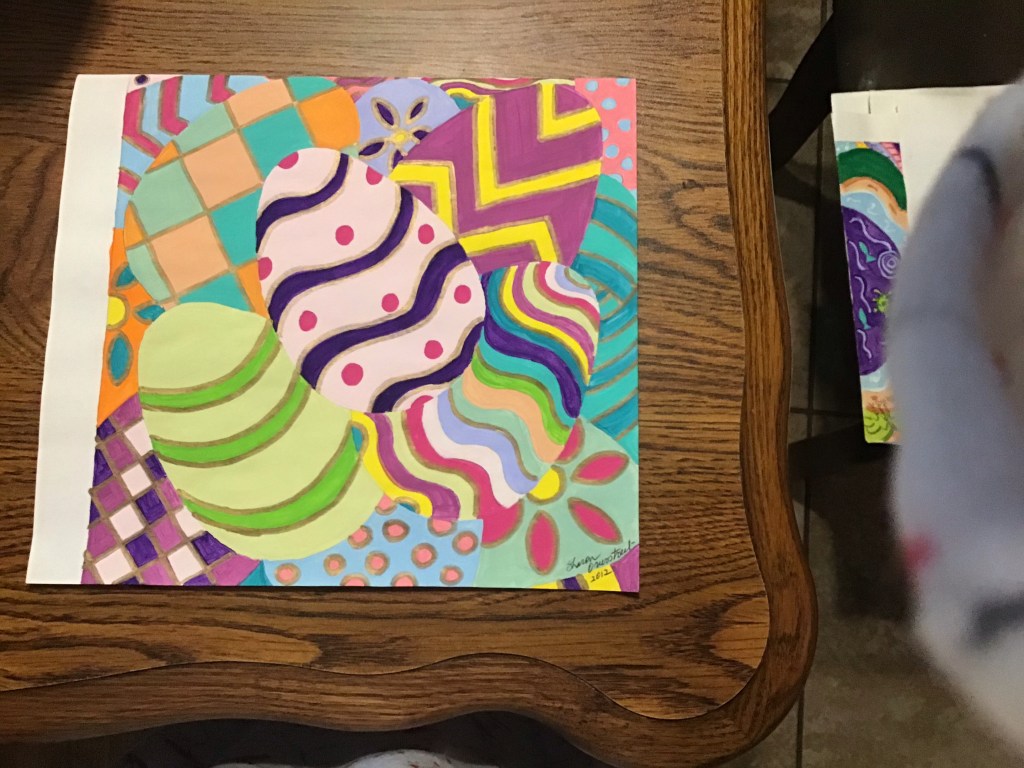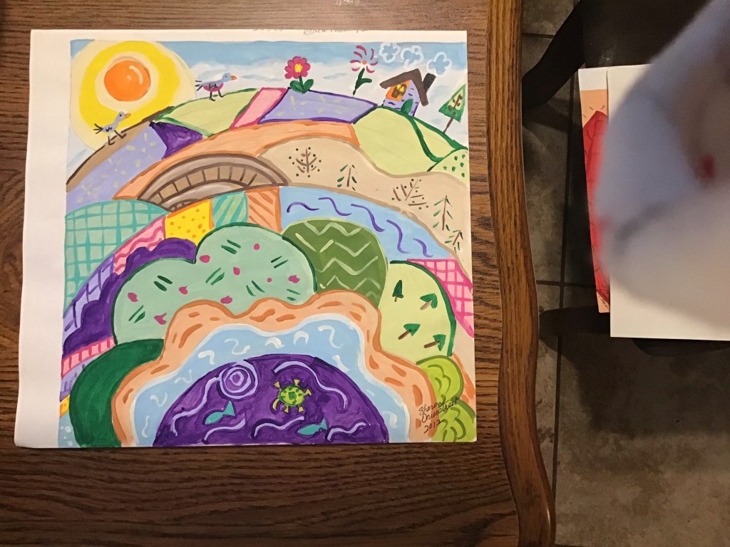I am a predominantly left brain thinker but I have been known to take a stroll over to the right side. Here are some things I found in there. The first is an item I bought at our local high school art show. The girl has talent.