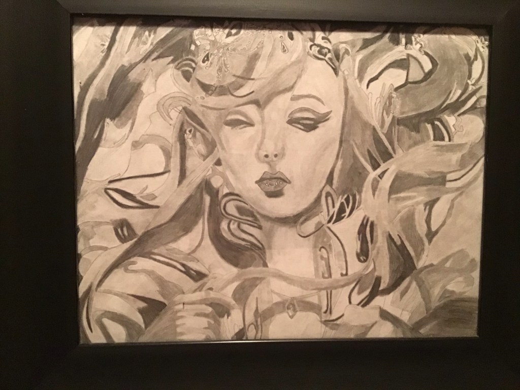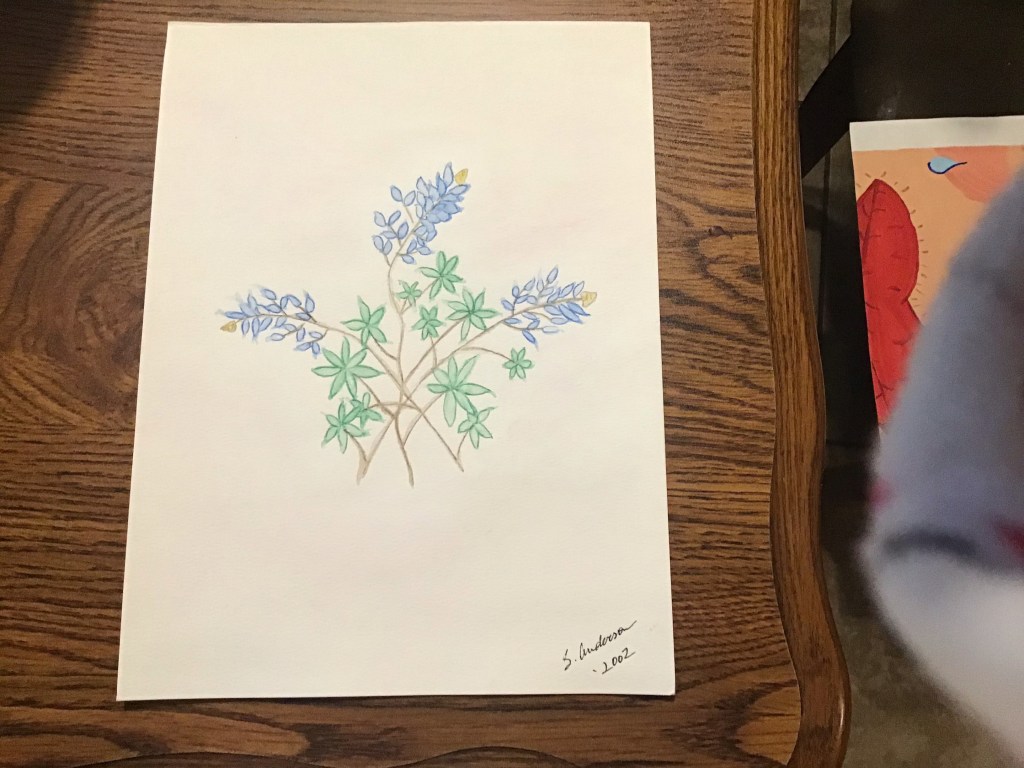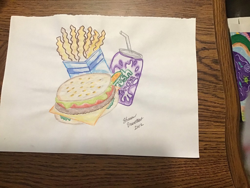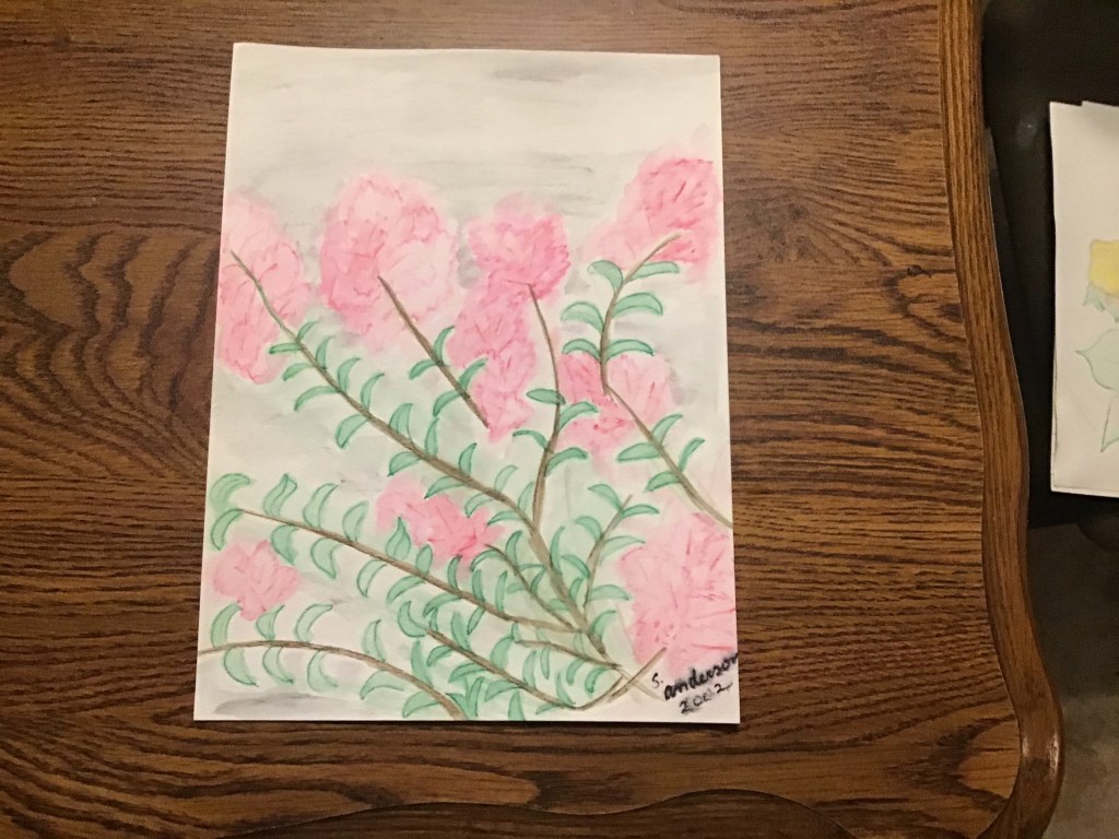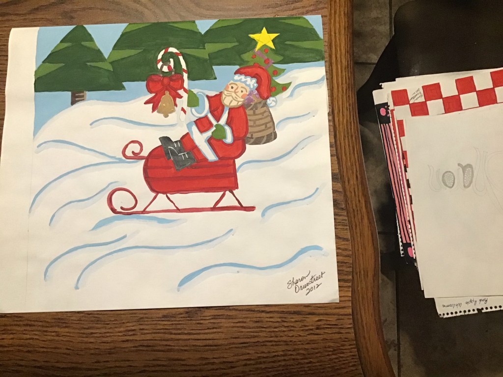 I am a predominantly left brain thinker but I have been known to take a stroll over to the right side. Here are some things I found in there. The first is an item I bought at our local high school art show. The girl has talent.