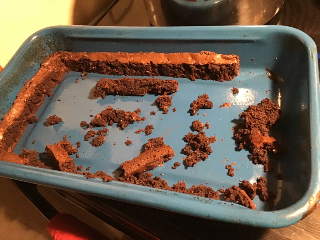 Brownies in the blackberry cobbler panCorner pieceOuter edges