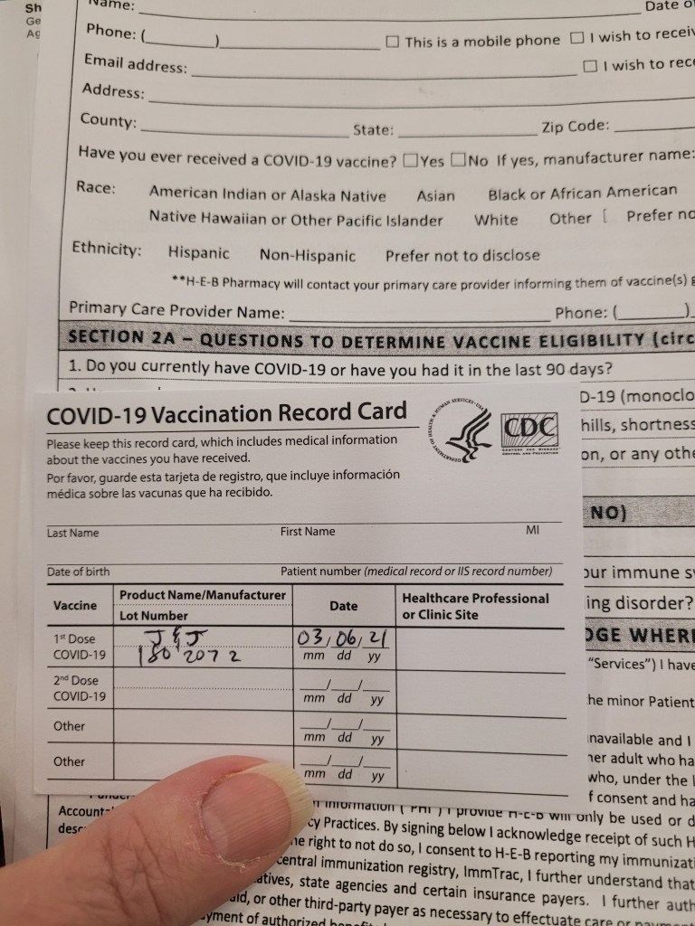 I did it. I got my covid vaccination today. I drove over an hour to get here and will drive an hour back home. I am now part of herd immunity. Tuesday we will be getting Chuck vaccinated an hour away in a total different direction. My arm already hurts.
