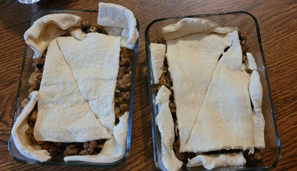 Put in a dish and top with crescent rolls. Bake for a wile at 350 or 400. I turns out yummy.