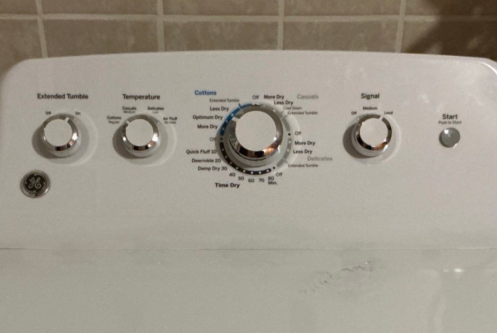 I plugged the address into my Google map and headed on my way to the house. I was still a little early. I sat in my truck and listened to my Audible on my Bluetooth app. Fifteen minutes till 9 and I was at that front door to the house. I asked the lady in charge if they still had the dryer. Yes they did. The price was $175. It was half price day. The new price was $87.50. Wow. I’ll take it. Put a hold sticker on it please. She asked when I would be picking it up and I told her I would get it right then.