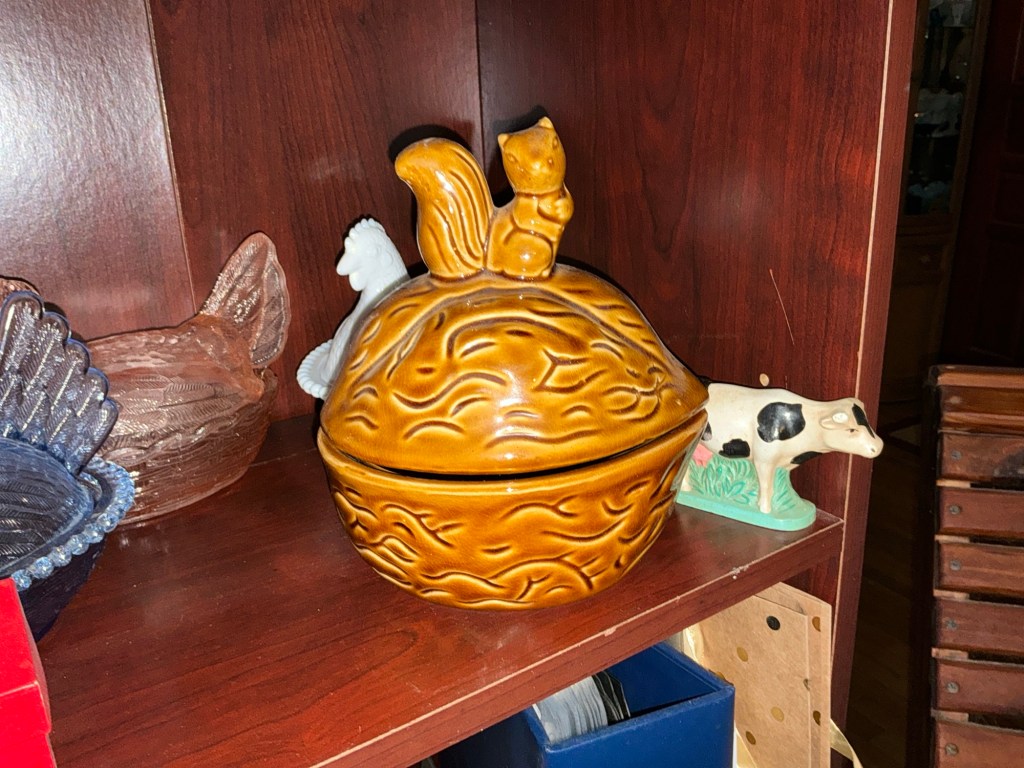 All in all I was glad to get out of the house and go enjoy the day. The picture of the squirrel on top of a nut is to show how nutty I can be. I found this treasure on my antique outing this weekend. He was a steal. He was in a box full of random items that I got for $5.00.