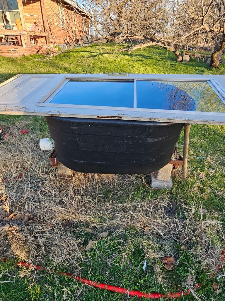 I also have a lettuce bed that I made using an old water trough. I noticed before the storm that some lettuce came up volunteer. I ate on that all summer. I planted a new package of lettuce. I saw some carrot sprouts as well. I have an old storm door I put on the top to make it a hot bed. It is not pretty but it works.