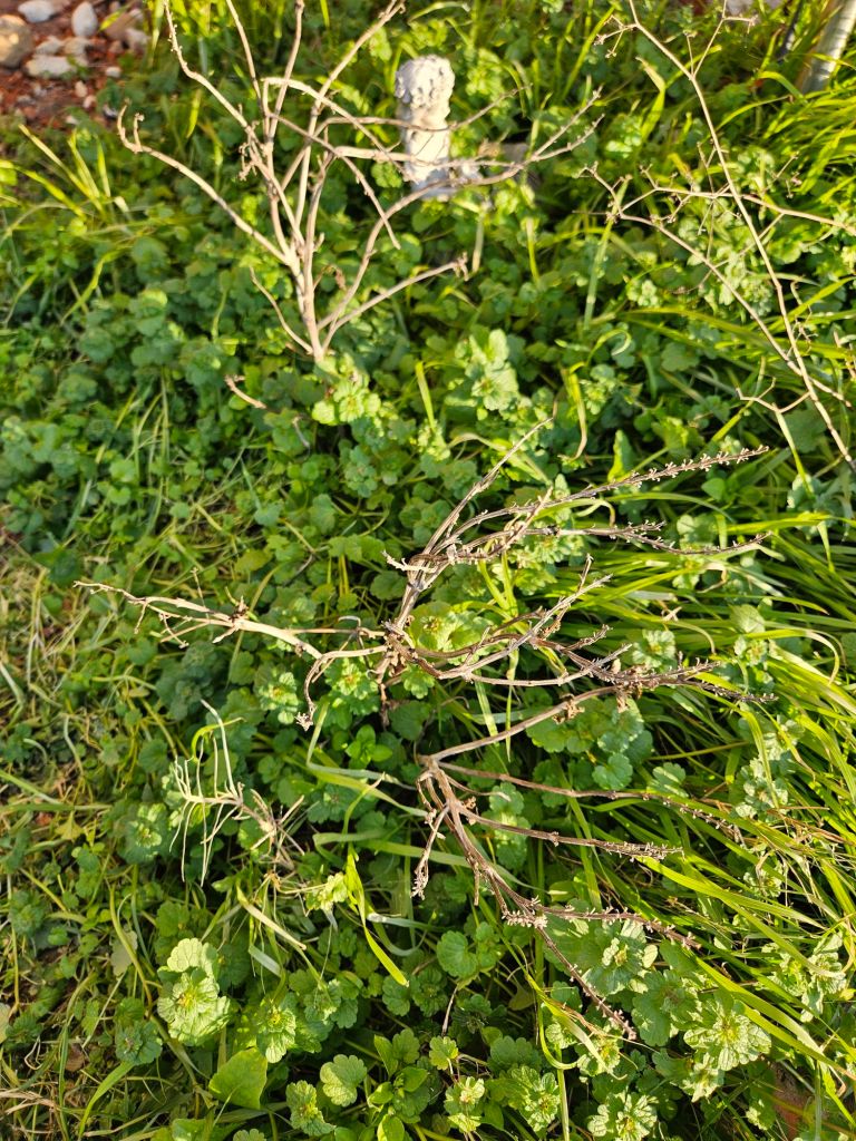 Maybe the basil will come back out. It is left over from last year. It had green leaves before the storm.