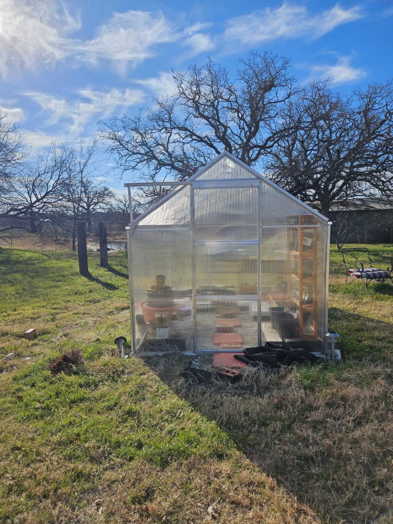 I built this greenhouse last summer from a kit. I am having to learn how to regulate the temperature so things do not freeze or burn up. It is a little tricky.