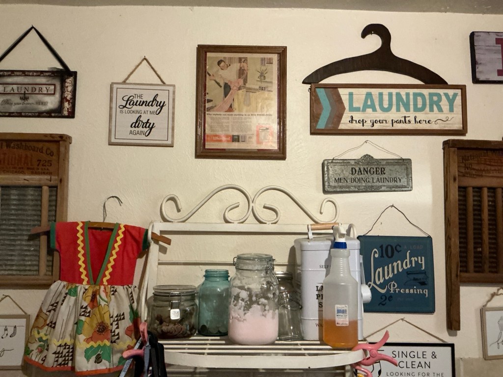 I need to redo the laundry room wall. It is getting a bit crowded. I will put the discards into a pile for garage sale.